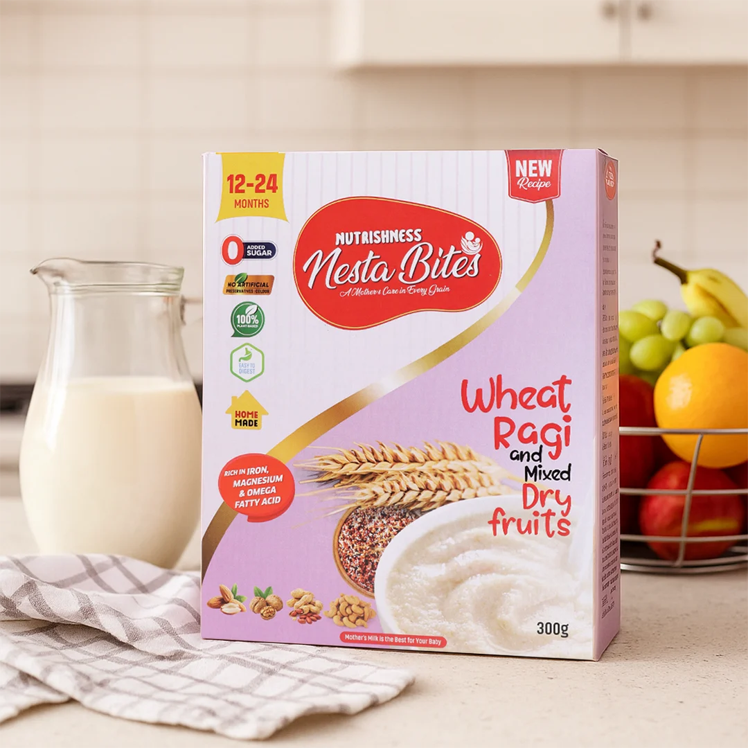 Key Ingredients: Wheat, Ragi, Mixed Dry Fruits (Almonds, Walnuts, Cashews, etc., as implied by the picture).